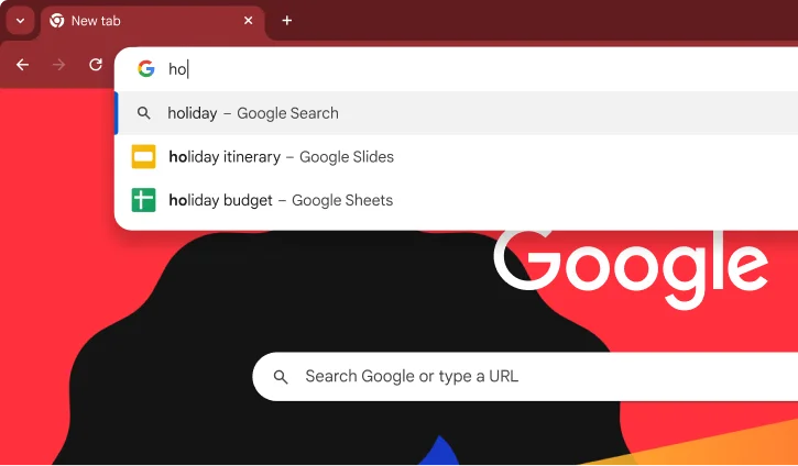 Sign in with your Google account to access Google Drive. With Chrome, you can quickly access your files right from the search bar and work on them while offline, too.