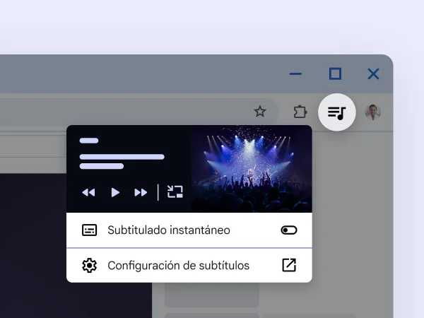 Chrome admite lectores de pantalla y lupas, y ofrece zoom de pantalla completa, colores de alto contraste, descripciones de imágenes con IA, subtitulado instantáneo, navegación con teclado y mucho más para que navegar la Web te resulte más fácil que nunca.
